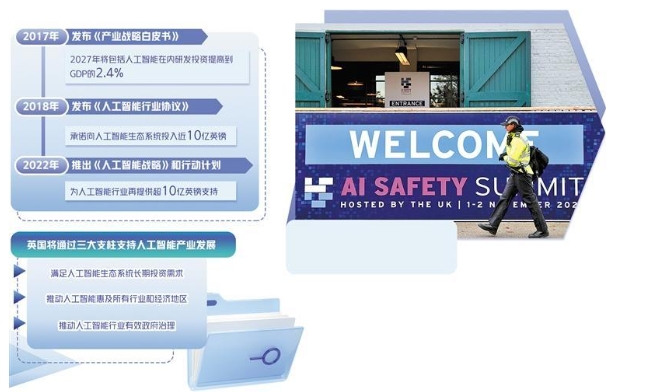 第三支柱是推动人工智能行业有效政府治理。英国政府着力于建立明确、适当和有效的人工智能监管框架,在支持创新的同时应对人工智能带来的风险挑战。2023年英国发布《人工智能白皮书》,概述人工智能监管机构的明确原则。原则包括安全性、保障性和稳健性,人工智能的应用须以可靠、安全和稳健的方式运行并管理风险。在透明度和可解释性上,开发和部署人工智能应以适当的方式解释人工智能系统的决策过程,应对人工智能使用带来的风险。白皮书鼓励监管机构对新技术采取包容原则,即容许企业在将技术引入市场前创造检查技术安全性和可靠性的试验环境。此外,与欧盟建立中央(欧盟层面)监管体系不同,英国采取跨部门监管的方式规范人工智能行业,包括英国电信管理局、金融行为监管局等监管机构将协同发挥监管职能。目前,英国正积极推动人工智能行业监管立法,将白皮书中的监管原则以立法形式确定。《人工智能(监管)法案》已经进入议会“二读”阶段,法案提议设立一个人工智能管理局,确保各个监管机构在人工智能上采取一致的监管,协调对人工智能产品安全、隐私和消费者保护等相关立法的规范性审查。