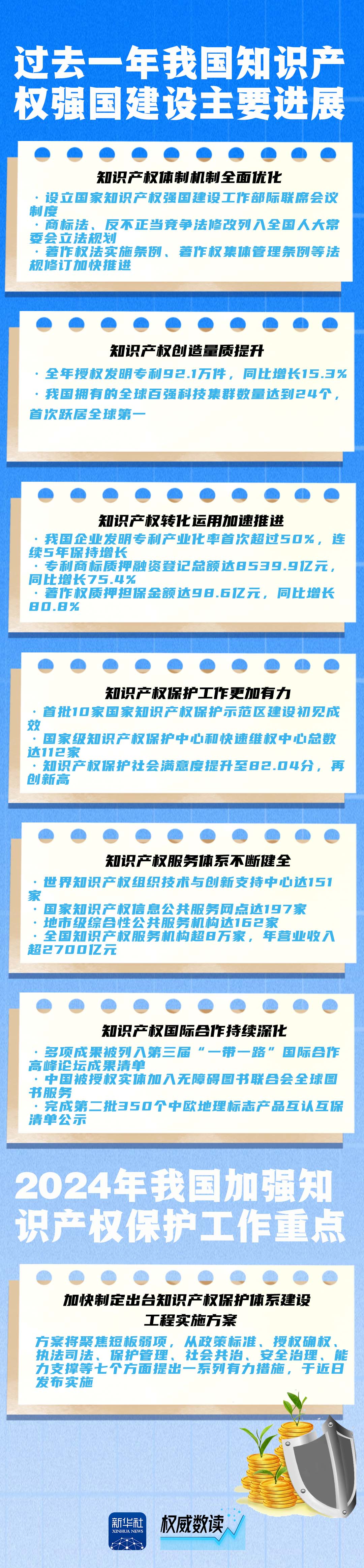 国新办24日举行发布会,介绍2023年中国知识产权强国建设有关情况。过去一年,知识产权强国建设有哪些主要进展?加强知识产权保护方面,今年的工作重点是什么?一起来看看吧。