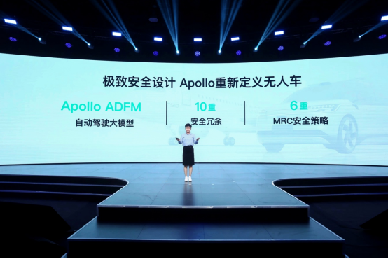 百度汽车机器人部总经理尹颖在会上发布了搭载百度Apollo第六代自动驾驶系统解决方案的无人车,萝卜快跑第六代无人车全面应用了“百度Apollo ADFM大模型+硬件产品+安全架构”的方案,该方案通过10重安全冗余方案、6重MRC安全策略确保车辆稳定可靠。萝卜快跑第六代无人车也是百度基于无人化出行的用户需求,聚焦“乘客安全”而全新定义的无人车产品。百度认为,无人车的极致安全应该是“永不宕机,永不失准,永远在线”。