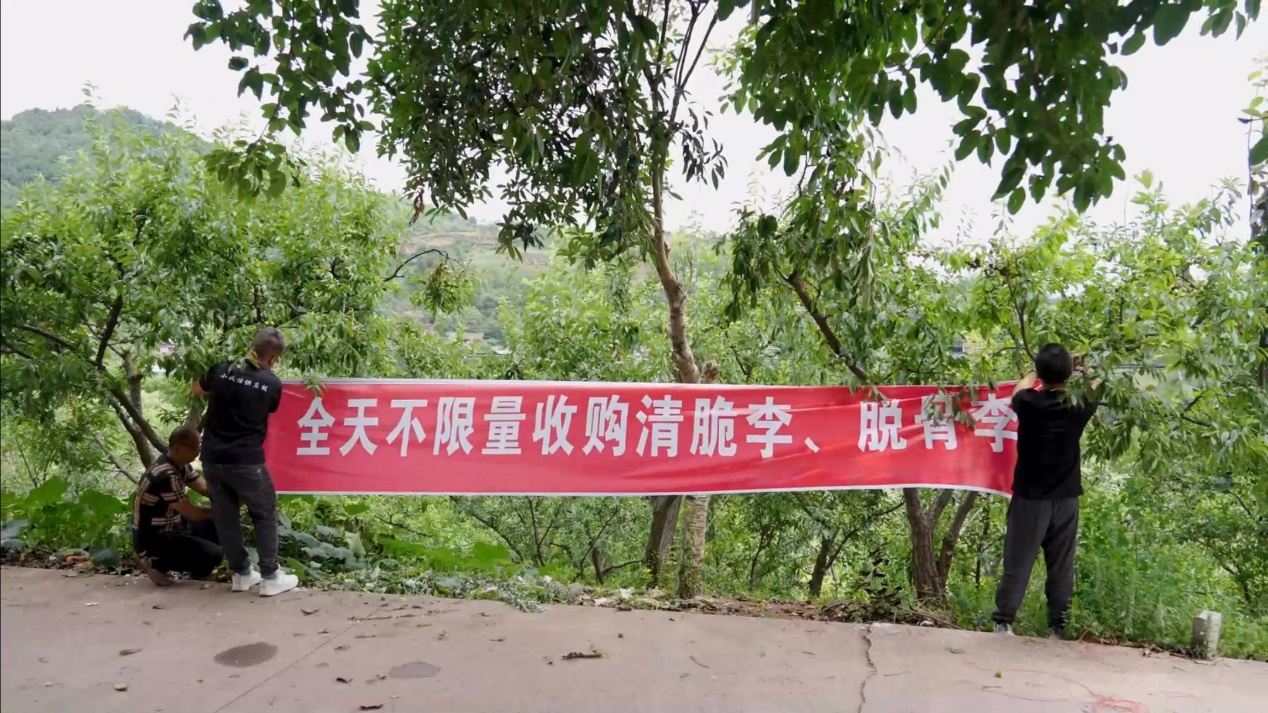 今年6月,简阳的李子又进入成熟期,这一次刘照东在镇上设了十多个李子收购点,让老乡们能够就近交货。跟去年一样,他又到镇上的快印店做了几条印着“不限量收购李子”的大红横幅。
