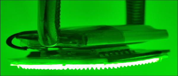 北理工团队研发的一体化光动力治疗装置发出治疗光。(受访者供图)