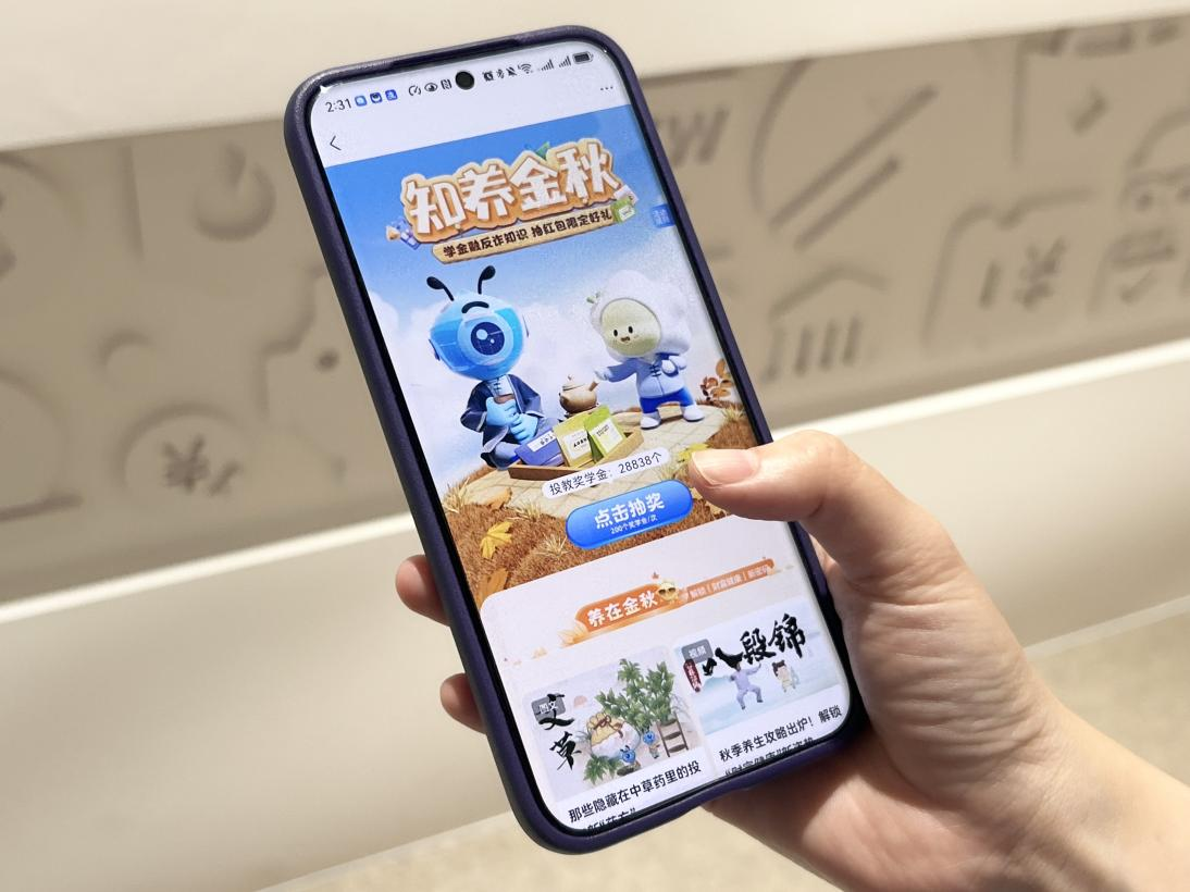 与此同时,为了让金融知识普及和防范非法金融活动宣传可以惠及更多民众,9月10日-9月30日期间,蚂蚁投教基地、蚂蚁基金在支付宝App同步上线了“知养金秋”有奖专题活动,用户通过观看科普短视频和漫画图文、参与知识竞答,就有机会赢取“反诈茶饮包”等限定周边和消费红包,目前已超过140万人次参加。