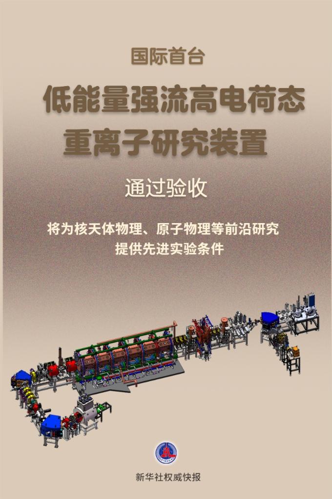 据介绍,该装置可提供强度高、电荷态高的重离子束流,且离子种类多、能量变化范围宽,将为核天体物理、原子物理等前沿研究及核能材料研发等应用研究提供先进实验条件。