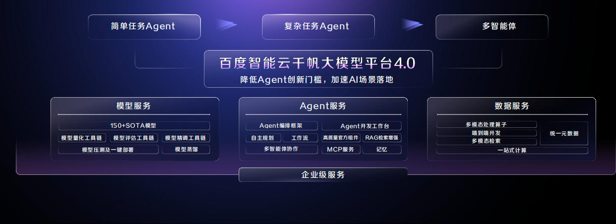 此外,为更好解决AI原生时代Agent的开发难题,千帆4.0新版本打造以Agent为核心的一站式企业级服务平台,为开发者提供Agent开发所需要的模型、Agent编排、数据和企业级服务等能力。目前,千帆平台企业用户数量超46万,Agents开发量突破130万,成为智能体规模化落地的核心平台。